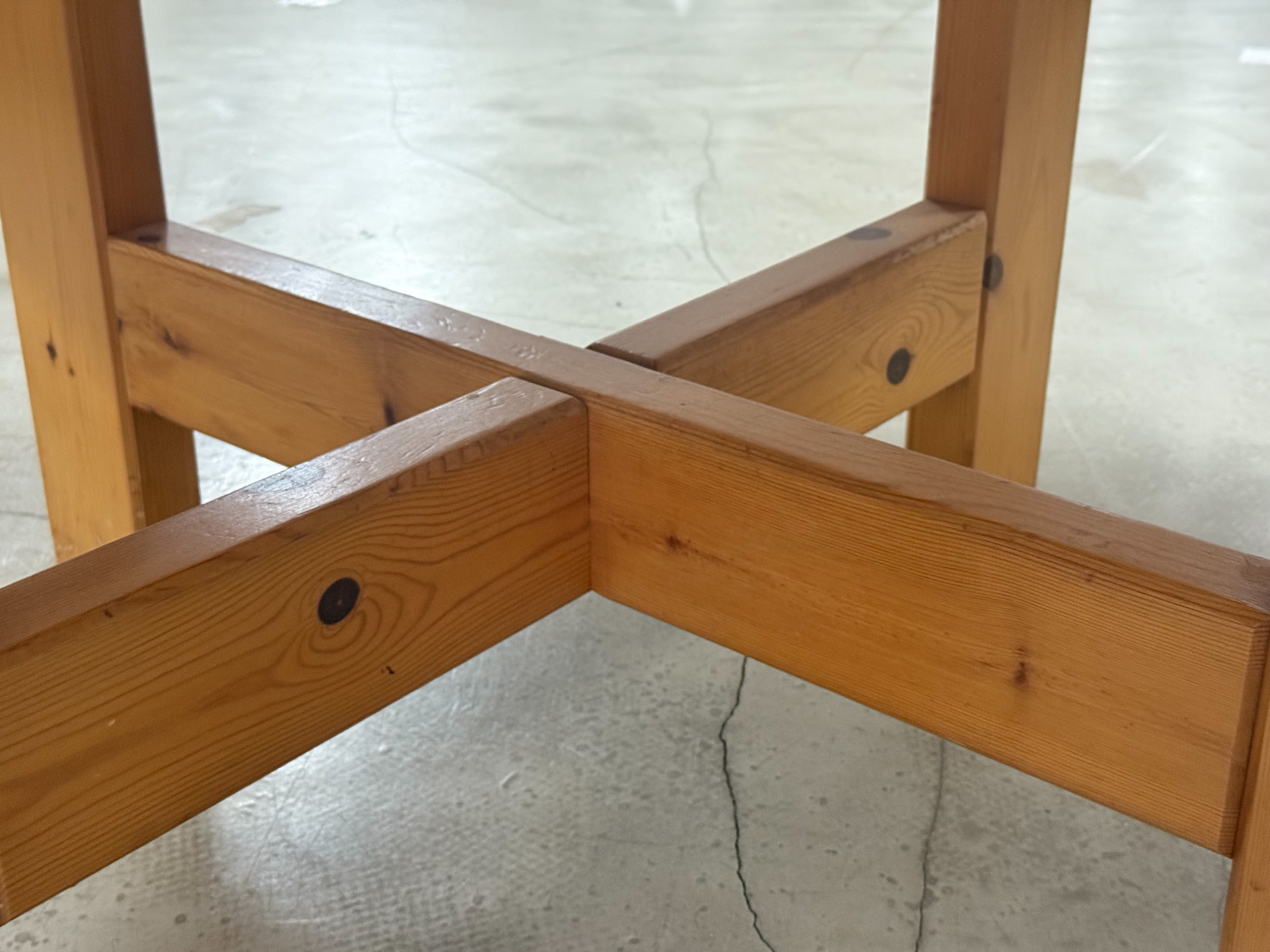 The table is distinguished by beautiful wood joints visible on and around the tabletop, as well as in its construction throughout. Both the base of the table and these refined details make it a striking design originating from the north.